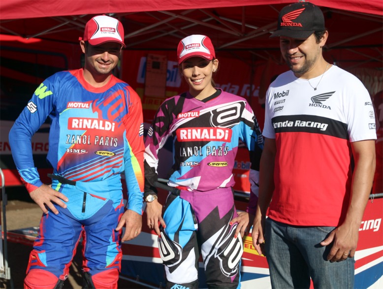 Os pilotos Bruno Martins e Bárbara Neves com o chefe de equipe Felipe Zanol