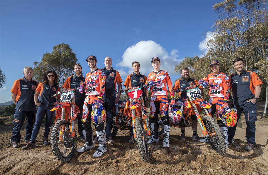 Equipe Oficial KTM Factory Racing chefiada por Dirk Gruebel. Pilotos Jeffrey Herlings, Pauls Jonass e Glenn Coldenhoff.