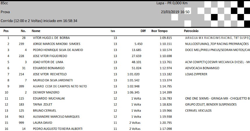 Outros vencedores do evento foram: Kauã de Souza (65cc), Vitor de Borba (Júnior/85cc), Fabricio Rondoni (200cc), Anderson da Luz (Intermediária Nacional), Mozara Bittencourt (VXF Nacional), Marcio Lago (VX3 e VX4 Nacional), Marcos Augustin (VX45 e VX5 Nacional) e Marcelo Marques (VX5 Especial).