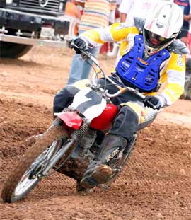 85cc junto) mostrando que a molecada esta disposta a encarar o sol forte. Quem largou na frente foi Gileno (Moto 51) que disparou até a bandeira deixando a briga pra quem vinha atrás. Na categoria 65cc a briga estava entre Glauver (Moto 100), Rico (Moto 259) , Lucas (Moto 19) e Luquinhas Bill (Moto 15). No final quem levou a melhor foi Rico com Glauver em segundo lugar.