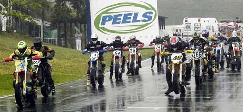 Ao mesmo tempo a organização da prova anuncia que o trecho de terra do circuito seria excluído. Tristeza para uns, alegria para outros, se por um lado tirou o espetáculo dos saltos, ganhou a emoção de andar na chuva. Motos alinhadas no grid e é autorizada a volta de apresentação para primeira de duas baterias programadas. Desespero na equipe do campeão brasileiro de Supermoto SM1, Marcel Sona, o pole-position da prova. Um problema no suporte de guidão tira do grid um dos principais candidatos a vitória.