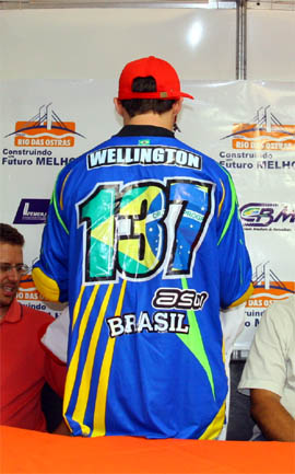 Durante uma entrevista coletiva com a imprensa em Rio das Ostras, o diretor de competições da Honda, Wilson Yasuda, apresentou aos jornalistas a camisa que será usada pelos brasileiros nos Estados Unidos. Depois, Wellington vestiu-a e posou para as fotos, sendo bastante aplaudido.