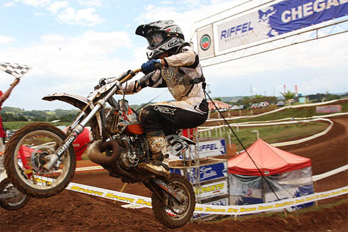 Os pilotos João Marronzinho (MX1), Gabriel Gentil (MX2), Milton Chumbinho Becker (MX3), Cássio Lima (intermediária), Lucas Araújo (nacional), Tauan Brenner (85cc), Maurício Treichel (65cc) e Jivago Rigo Filho (50cc) foram os vencedores nas oito baterias disputadas neste domingo, 2 de março, em Videira, no meio-oeste do Estado, durante a etapa de abertura do Riffel Motocross 2008 – Campeonato Catarinense.