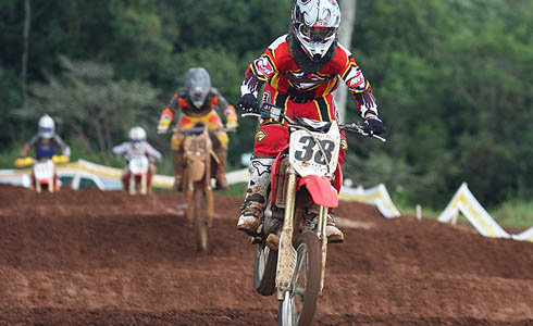 Assim como aconteceu na etapa de Tubarão no ano passado, ele deteve a ponta até os 10 minutos de prova quando furou o pneu traseiro da sua KTM. E novamente o maior beneficiado foi Treichel que seguia na segunda colocação, embora dessa vez com a constante presença de Northon a dois ou três segundos de diferença. “Quando passamos o Rodrigo eu até tentei chegar mais no Ito (Treichel). Mas ele conseguia sair mais rápido das curvas, mandava o duplo mesmo saindo por dentro e não deixava eu me aproximar”, contou Northon, satisfeito pela sua melhor colocação no estadual.