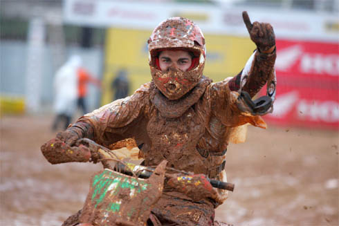 Leandro Silva comemora a vitória no barro que lhe deu também a liderança na classificação geral da SX1 Foto: Idário Café |