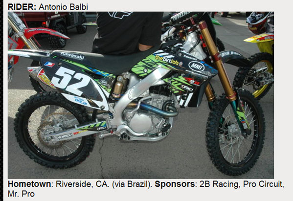 Depois de duas provas difíceis Antônio Jorge Balbi Jr. conquistou a classificação na terceira etapa do AMA Supercross 2010. Este ano o piloto optou por competir pela primeira vez na classe 250 Oeste onde acelera uma Kawasaki até retornar ao Brasil para competir no campeonato nacional da MX1.