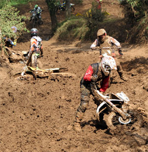 Barro cobriu motos e pilotos principalmente nas primeiras baterias |