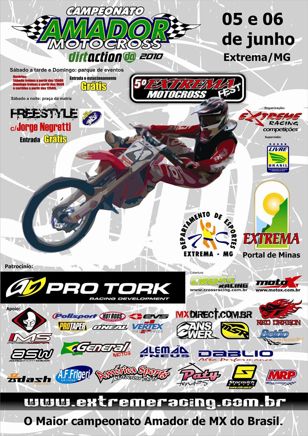 www.extremeracing.com.br Cobertura completa MotoX Programação 5º Extrema Motocross Fest - 3ª etapa Amador de MX Dirt Action Sábado 05/06/10