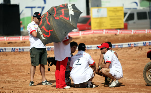 Enquanto isto brilhavam os companheiros de equipe do piloto Honda. João Marronzinho e Leandro Silva foram os protagonistas de uma intensa disputa que valeu o campeonato da categoria principal. Quem largou na frente na corrida foi Wellington Garcia, mas a chance de repetir a bela prova da MX2 (veja mais a frente os detalhes da prova das 250cc) foi comprometida por um parafuso solto na regulagem da transmissão. Logo no início da prova o goiano passou pelo pit-lane apontando a roda traseira da motocicleta, mostrando à equipe que algo estava errado.