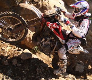 Algumas das passagens são mais propícias ao alpinismo do que ao motociclismo. Aqui o inglês Paul Bolton, 4º colocado |