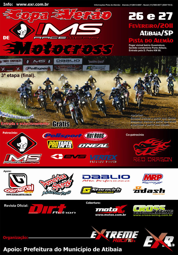 Apoio: General Motos / América Sports / Red Dragon / Dablio Alta Performance / MRP Racing / Frigeri / Speed Up Energy / Stocovich Design / Dash / FX Pro / M. Negretti / Turella Motos / Cross Racing / MotoX / Dirt Action.