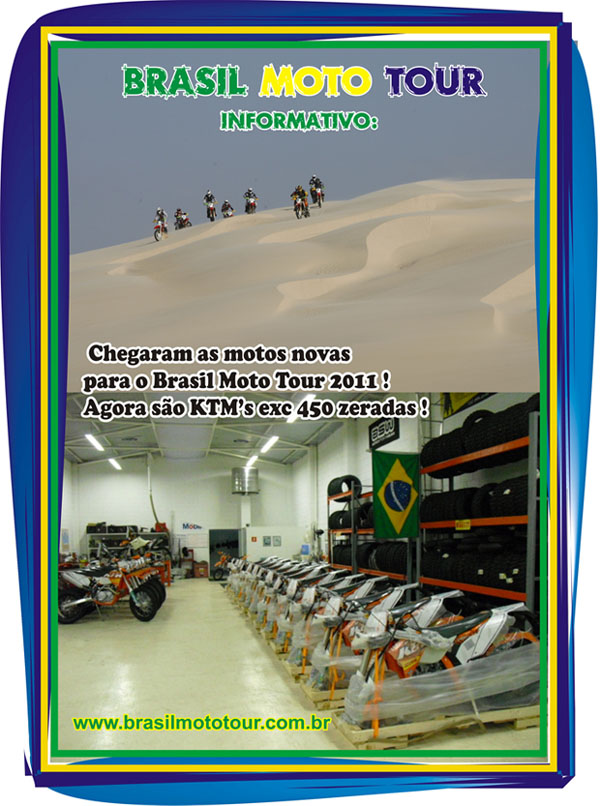 A Brasil Moto Tour acaba de trazer uma novidade que certamente irá agradar em cheio os apaixonados por off-road e pelo turismo de aventura. A empresa de mototurismo substituiu toda sua frota por 20 novas motocicletas KTM 450 EXC para serem utilizadas nos passeios promovidos.