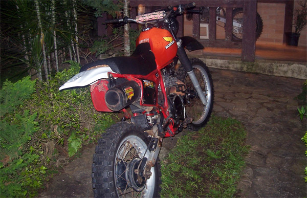 2 - Honda XL 600 vermelha e branca preparada para trilha.