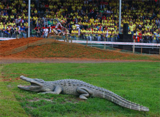 Bonecos em forma de bichos fizeram parte da cenografia da pista |