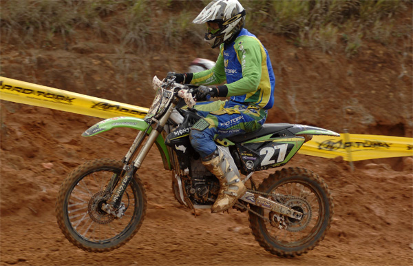 MX2. Largando bem, ele assumiu a ponta ainda na primeira volta e deixou a disputa para trás entre Wilgner 'Guigão' Francisco e Daniel Caputo, atual campeão da categoria. Com o caminho livre e negociando muito bem com os retardatários, Netynho foi abrindo uma confortável vantagem em elação aos demais, o que lhe garantiu uma vitória tranqüila. Guigão foi em busca do líder após deixar Caputo para trás, mas teve dificuldades com alguns retardatários e teve que se contentar com o segundo lugar. Caputo ficou em terceiro. Rodolpho Isart Moraes subiu de categoria este ano, mas vai mostrando cada dia mais seu entrosamento com a moto e largou na quarta colocação, mas foi ultrapassado por Gustavo Verrone terminando a prova em quinto.