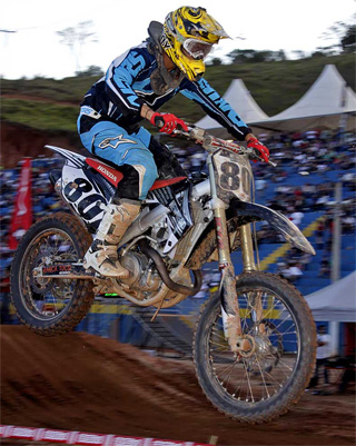 MX45. Logo depois, ele acabou caindo e deixou a liderança ser decidida na disputa entre Rinaldo Spagnol e Marco Mugão, que passou a perseguir o novo líder da prova. Enquanto isso, Mauricio Gerlach, Alessandri Dias e Ney Marcolim formavam o segundo pelotão. Mugão fez a ultrapassagem na metade da bateria, depois conseguiu abrir um pouco e garantir a vitória. Mais atrás, Alessandri e Ney deixaram Maurício para trás, dessa forma os cinco primeiros colocados definiram o pódio da MX40: Mugão, Rinaldo, Alessandri, Ney e Maurício. O resultado da MX45 foi: Rinaldo, Edvaldo Rosa, Flavio Lofredo, Oscar Kleiber e Sergio Muniz.