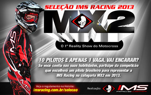 a Equipe IMS Racing de Motocross divulgou um formato diferente para escolha de um atleta da categoria MX2 que irá representá-la nas pistas em 2013. Uma espécie de reality show, que será gravado e divulgado na internet, mostrará todo o processo de escolha do companheiro de Adam Chatfield, Wellingon Valadares e Cristiano Lopes.