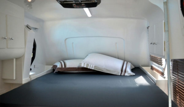 O equipamento acomoda de três a quatro pessoas e conta com pia, fogão, geladeira, mesa, sofá, TV, DVD, além de banheiro completo, com chuveiro, vaso sanitário e pia. Permite ainda a colocação de toldos na área externa e também que outros reboques sejam acoplados à caminhonete para o transporte das motos, sejam eles fechados ou abertos.