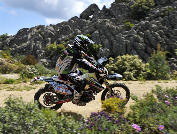 ao longo dos cinco dias do Rallly da Sardenha, na Itália, foi tão confortável que ele nem precisou se esforçar para vencer o último dia da competição, nesta quarta-feira. Mesmo longe dos primeiros postos do dia, ele garantiu uma diferença de sete minutos na soma de todas as etapas, para o segundo colocado, o português Paulo Gonçalves. O principal adversário ficou com a terceira colocação do dia, atrás de Joan Pedrero Garcia e de Alessandro Botturi. O francês Cyril Despres, que faz sua estreia na equipe Yamaha, foi o quarto colocado tanto na etapa final quanto na classificação geral. O terceiro posto na soma de todos os dias foi de Botturi.