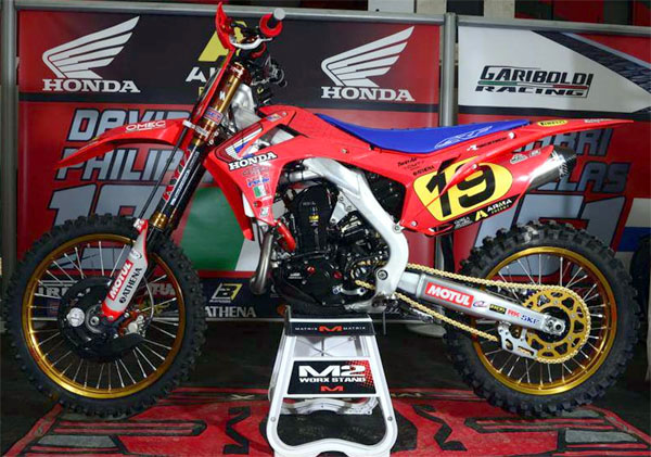 David Phillippaerts guardou para este fim de semana uma surpresa para os fãs do esporte. A CRF 450R que o italiano irá pilotar na nona etapa do Mundial de Motocross em Maggiora, Itália, é uma réplica do modelo Honda usado pela equipe americana no Nações de 1986, realizado na mesma pista. A equipe dos Estados Unidos dominou aquela edição da competição, com seus pilotos saindo vencedores da pista que fica bem próxima da casa do atleta da equipe Gariboldi Honda.