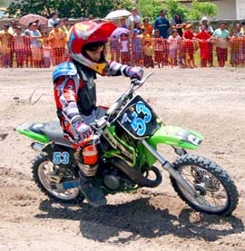 65cc por ter pouca moto no gate, mas a garotada adorou e fez com que a festa fosse ainda maior para o público. Quem largou na frente foi George(Rã) que vem se destacando a cada prova e melhorando sua tocada principalmente com sua moto nova a KTM 65cc super preparada que seu pai comprou. Após as primeiras voltas quem começa a incomodar o líder é Gilberto de Sá filho garoto de apenas 7 anos e anda de KTM 65cc ele foi em 2005 Vice-Campeão Paulista de Motocross na categoria 50cc. Seu pai com muito orgulho conta que acompanhou o filho em todo Campeonato.