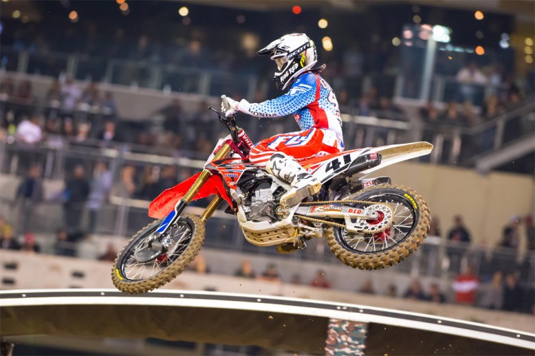 Depois das cinco primeiras etapas, assistir a uma vitória de Cooper Webb não deveria ser surpresa para ninguém, afinal ele já vencera três das cinco primeiras etapas. Mas o garoto da Star Racing Yamaha sofreu uma queda feia ao final do primeiro treino cronometrado. Virou para a frente num pequeno triplo e foi direto com o ombro e a cabeça ao chão. O líder do campeonato saiu desnorteado da pista, passou pelo centro médico e não deu as caras na segunda tomada de tempo. Chegou-se a cogitar sua ausência durante as provas noturnas, mas seu destino deu uma virada assim que o Sol se pôs.