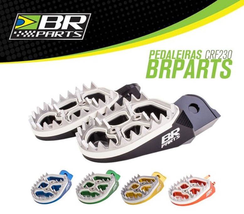 A BR Parts disponibiliza no mercado brasileiro uma linha completa de produtos voltados para o modelo CRF 230. Entre vários itens, um que se destaca é a pedaleira, desenvolvida para proporcionar mais aderência e apoio na hora da pilotagem, além de maior durabilidade em condições severas. Produzida em diversas cores, ela também garante um visual diferenciado em relação ao da motocicleta original.