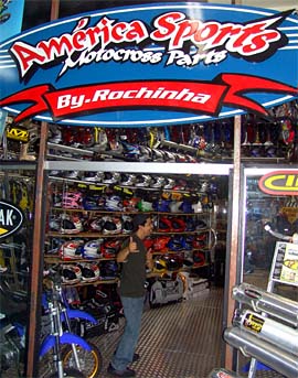 A loja América Sports, uma das principais do país no segmento motociclismo off-road, acaba de ampliar suas instalações no Shopping General, centro de São Paulo. Conhecida pelo excelente atendimento e simpatia dos funcionários e de seu proprietário Rochinha, a loja paulista oferece milhares de produtos para enduro, trilha e motocross.